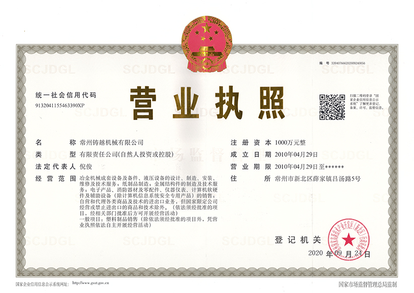 常州铸越机械有限公司营业执照正本